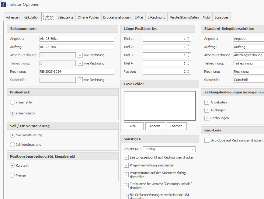 Dies ändern Sie unter „Extras“ – „Optionen“ und gehen dann auf den Reiter „Belege“
